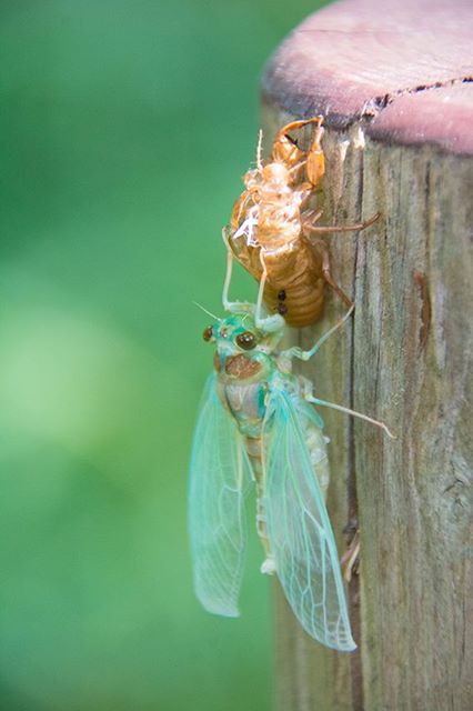 ヒグラシの羽化 素晴らしいショットです。初めて見ました。