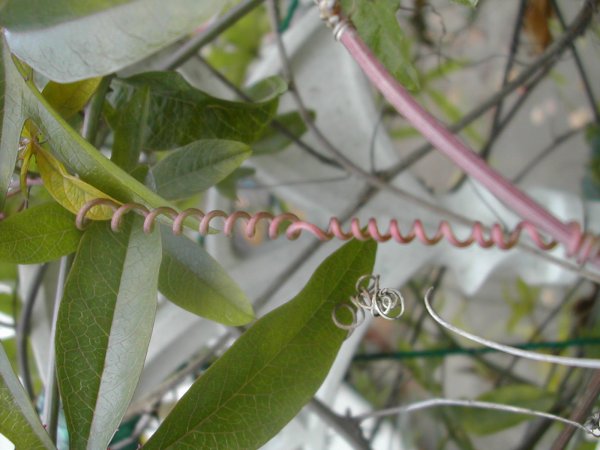 トケイソウの蔓ですが、何かに絡まった蔓は生き残り、絡まらないのは枯れるようになっている!