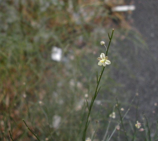 アスパラガスの花を、コンビニの裏側で見つけました。初夏に咲いていて、また咲いているというのは返り花かな?