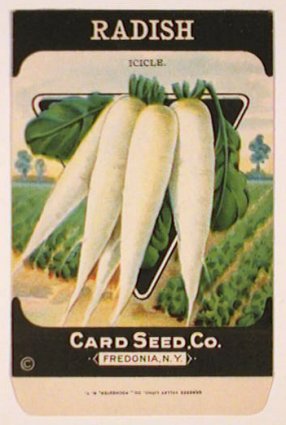 アメリカの大根の種と袋。古い。Radish (icicle)とあるが、icicleとも言うのかな?
