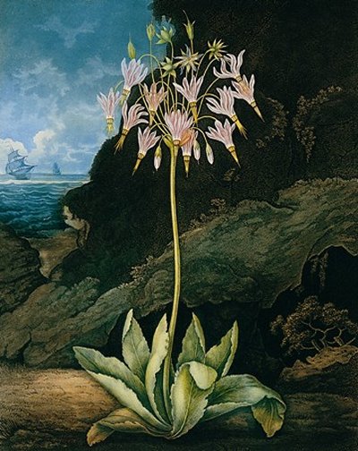 ソーントン博士 『フローラの神殿』シリーズより「ジ・アメリカン・カウスリップ」(The American Cowslip)1801年。銅版画。オークション価格47万円だって!