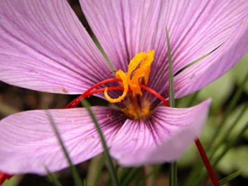これが正真正銘の「サフラン」。期せずしてサフラン摘みのおばさんに、早く採ると二回できるというコツを教わりました。