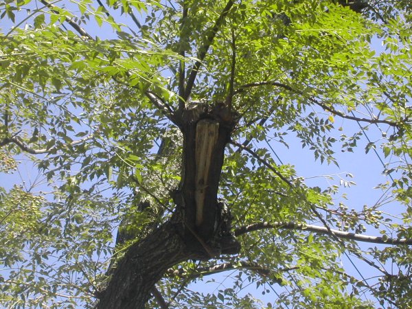 勢いのよかった枝は切り取られ、かえって実がよく見えるようになりました。公園のような、役所が管理するところは枝落としが早いです。