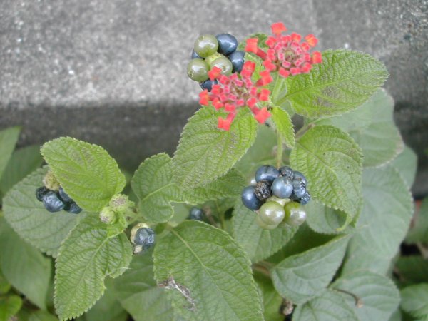 ランタナ。実と花。花色は何種類かある。