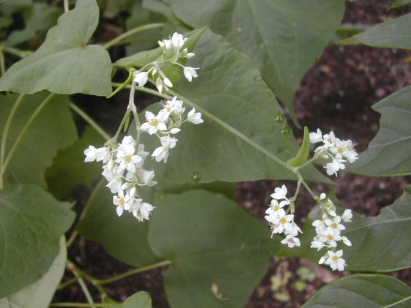 近くの蕎麦屋さんのソバは、実が入って刈り取られました。これは放置されているもの。霜が落ちるまで元気みたいです。