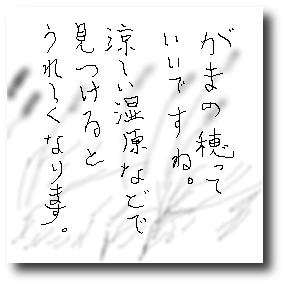 がまの穂 shimirin - 2003/08/24(Sun) 22:09 No.187   HomePage
