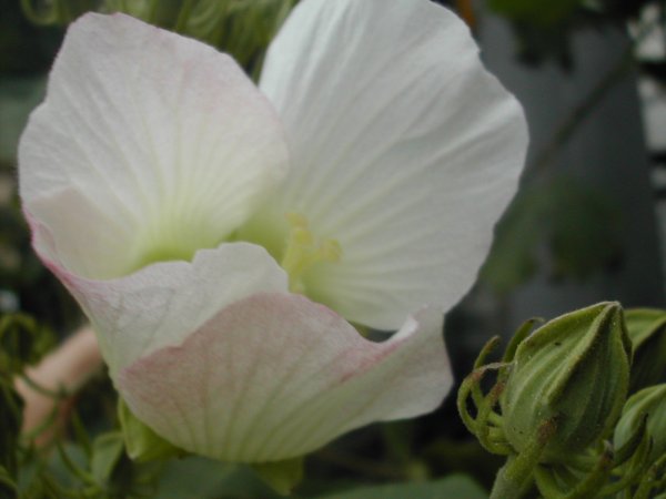 (もう少し酔ってぴんくになっています。花は夕方には全部赤くなって、萎んだまま翌日落ちます。→酔芙蓉)
