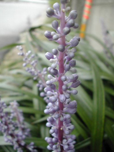 気がついてみると、こころなしか青い花が増えてきています。これは「ヤブラン」。園芸種で斑入りのもあります。日陰のグラウンド・カバーに使われていたりします。