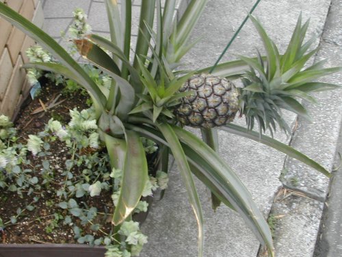 近所の家のパイナップルです。いつ見ても変化がなさそうで(笑)