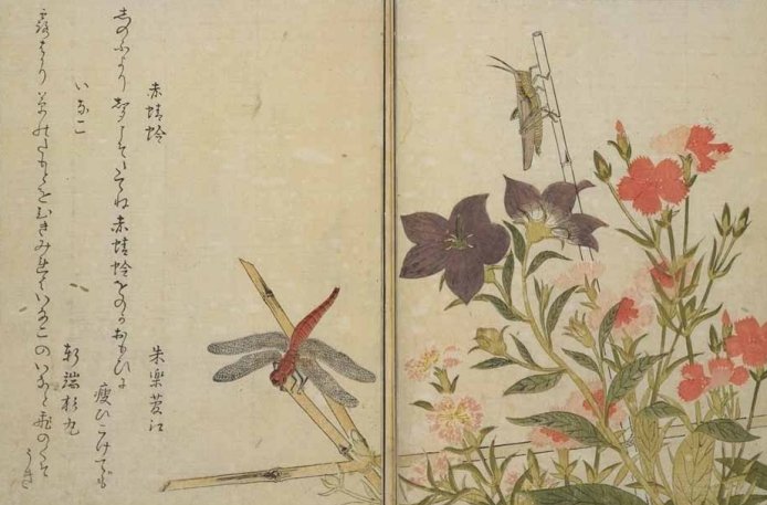 長雨がようやく上がった。冷夏はどうしようもないのかも知れない。赤とんぼやバッタも出はじめていた。彼らはどうやって雨をしのいだのだろう。もはやばったのいる草むらは本当に稀だ。夏休みも終わり近くなると、懐かしいものがでてきそうだ。喜多川歌麿筆、宿屋飯盛選。朱楽菅江(あけらかんこう)の狂歌