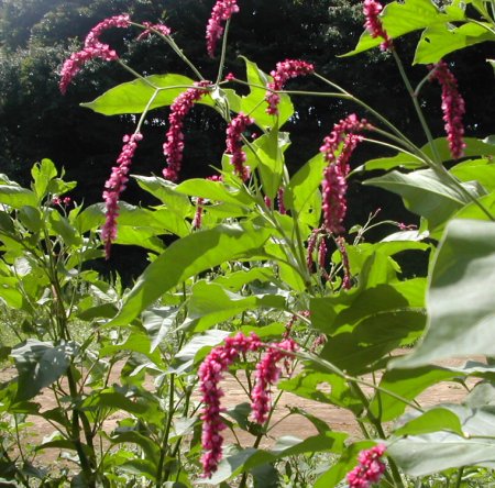 頑張って隣の駅まで、緑の多そうなところを歩きました。途中に造成された住宅地があって、新築した農家と肩を並べているようでした。植えてある花で、家の様子がわかります。ミソハギを植えている家は、農家かお年寄りがいる家。・・・・と歩きつつ踏み迷ったところが「アカマンマ」のある切り通しでした。