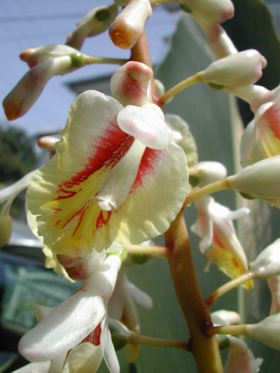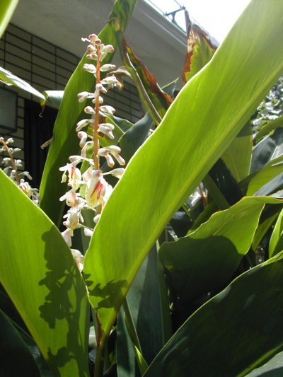 初めて見ましたが葉は大きく、花はらんのようです。沖縄で祭式に使うのですね。あの家は沖縄出身の方の家だったのかしら?。こちらでもとんと見ません。