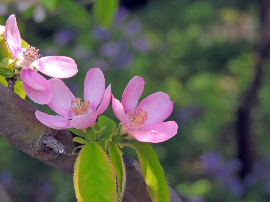 葉脈の紫色と花の淡い紅紫色のコントラストが素敵です。