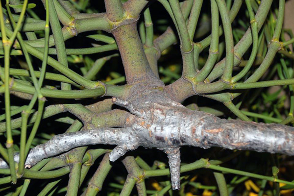ヤドリギはコルクのようだといいますが、実際はこんなです。