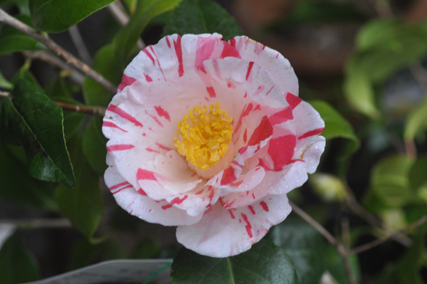 八重で紅の絞が入り素敵な椿です。