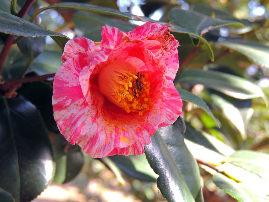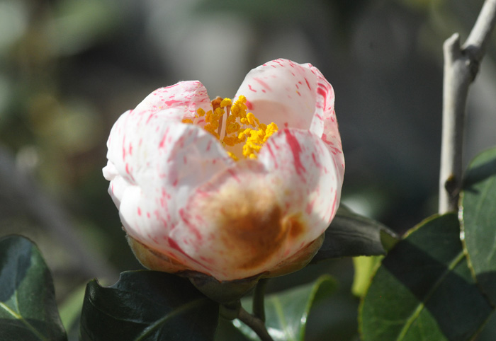 なかなか渋いツバキだと思っていたら、このあずき色みたいなのが、寒い地方ではよく出ないのだそうだ。薄くて似た花はあるが、比べるとやはりこれがいいと思う。