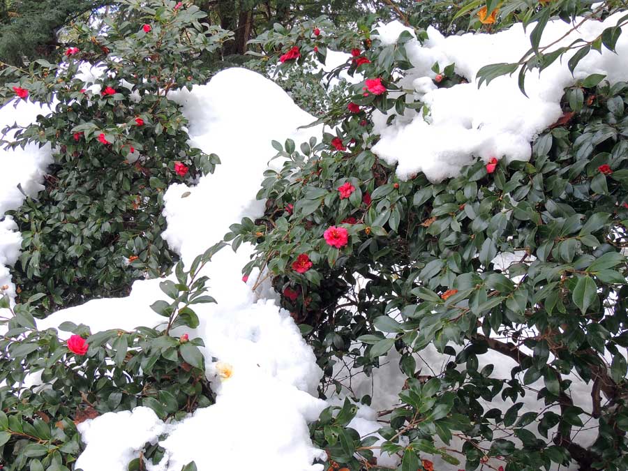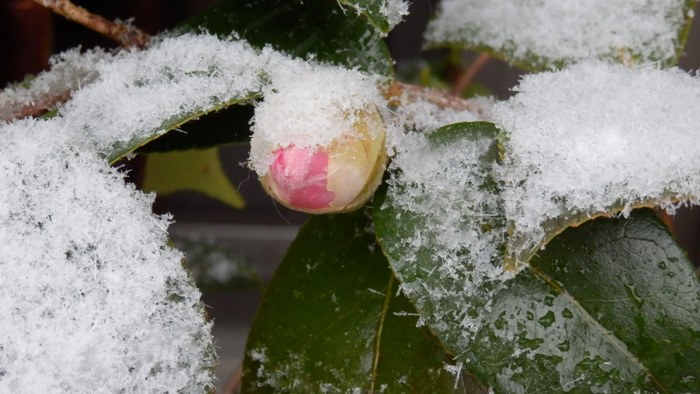 サザンカに雪