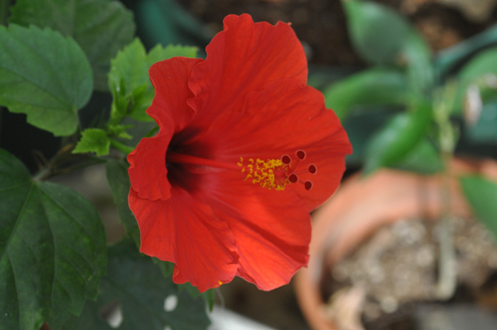 さえない温室ですが、ハイビスカスが咲きました。