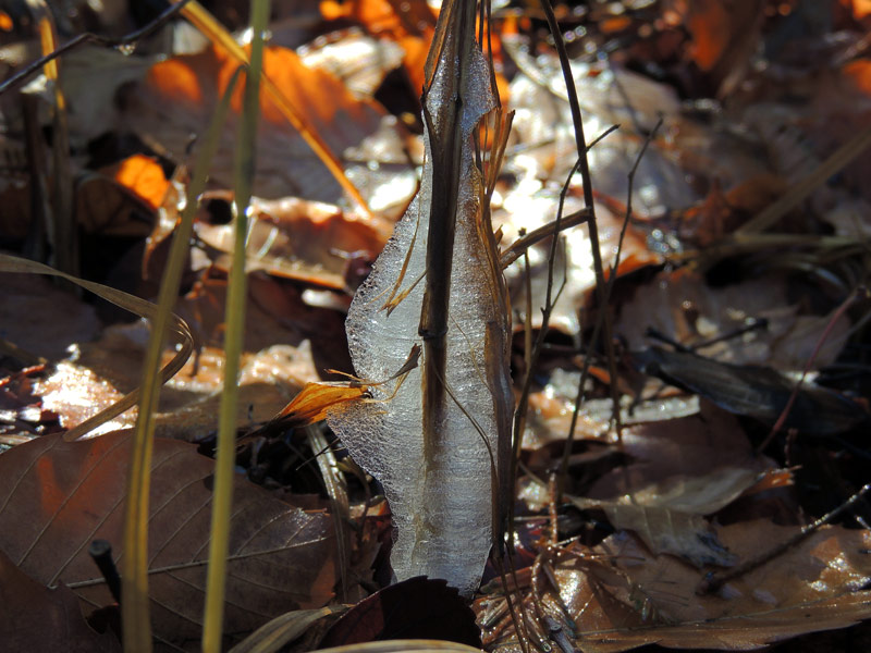 シモバシラに付いた霜柱