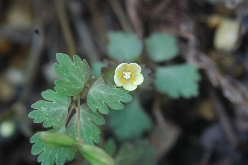 なくなってしまったかと思ったら、バイカオウレンの影にさいていました。