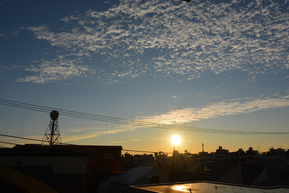 昨日の日の出。うろこ雲の形もおもしろかった。