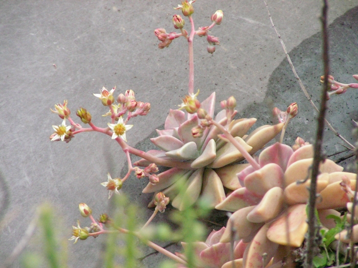 珍しく、おぼろ月という種類の多肉植物とともに花が咲きました。