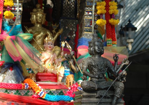 あちこち・・・会社の入り口や角などに、こういう社みたいのがあって、お花を飾りお祈りしています。