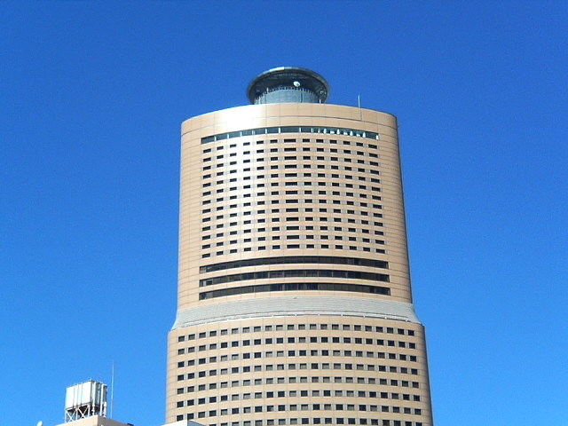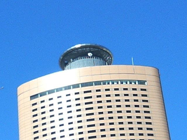 青空を見てください。塔屋建物のうえはヘリポート?