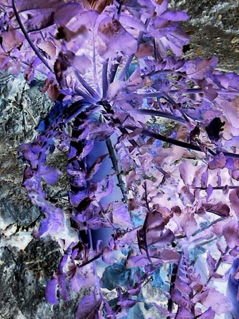 葉緑素の緑が赤方向に遷移するせいか、地面の土から植物体が強調されます。緑を強調する撮りかたをすると、この画像は立体感が出たかも知れません。