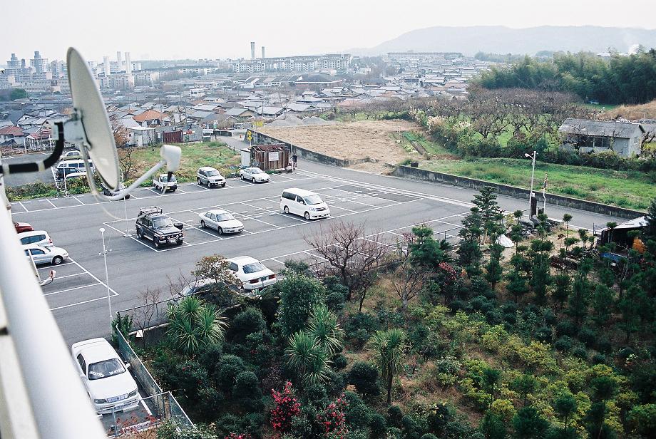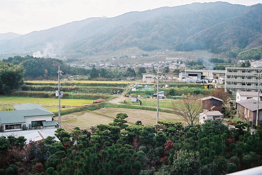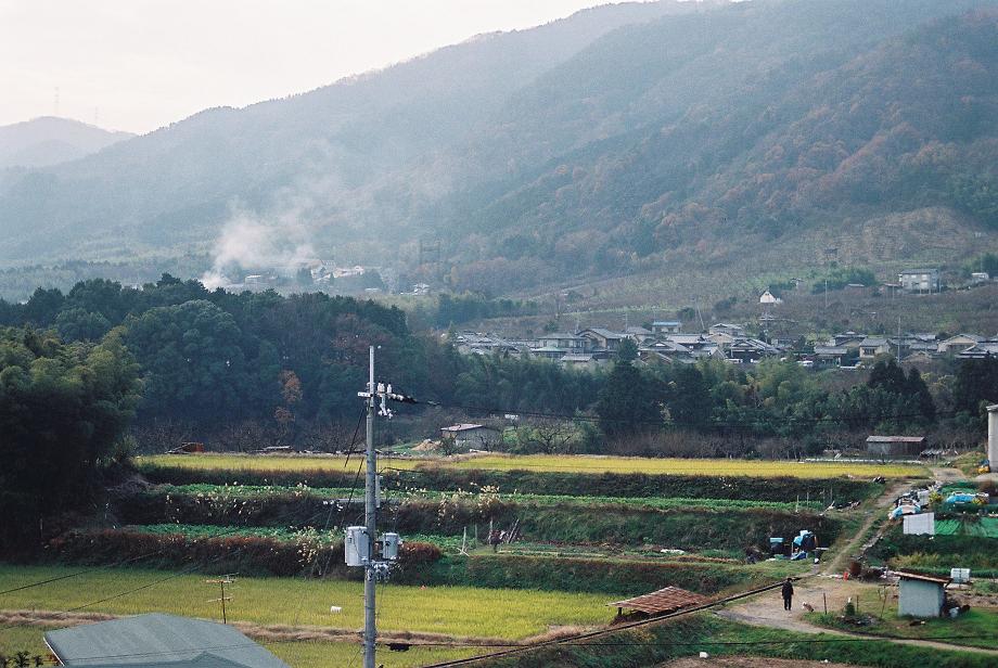 転居前、京都市西京区大原野の風景、自宅ベランダから記念のために撮影したものです。銀鉛写真をCD−Rに焼いてもらいました。この西山の方向の裏、東山の方向が洛西ニュータウン、その向こうがすぐ京都市、大都会です。このアンバランス。