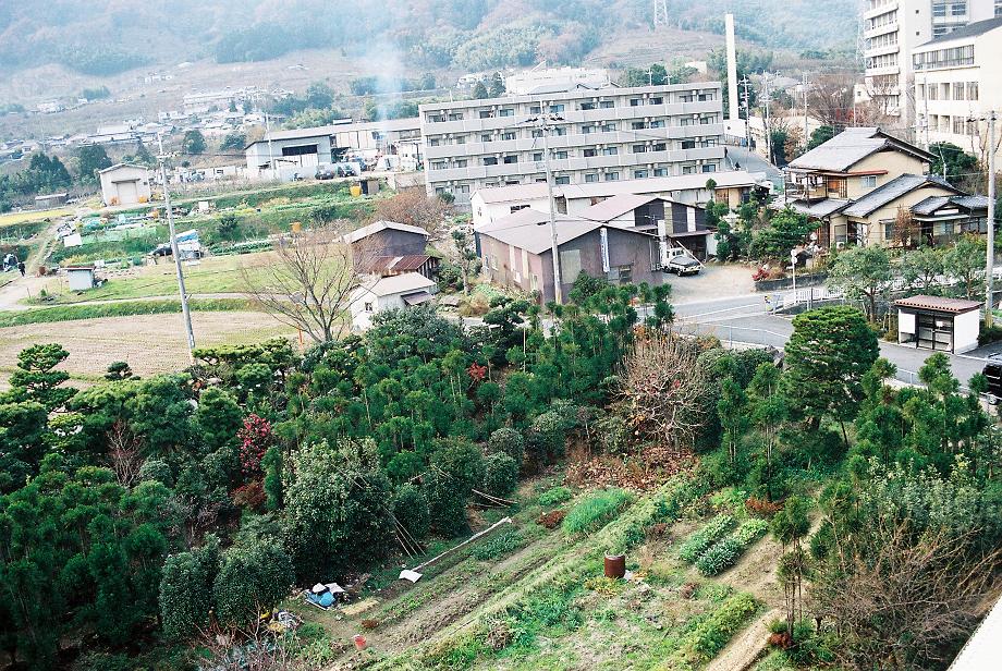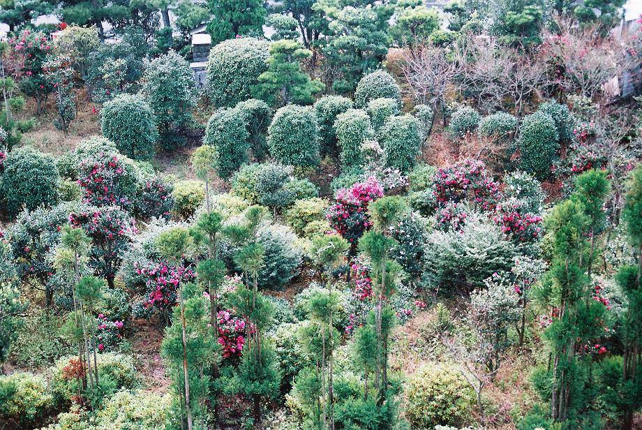 マンションのベランダの下が植木畠になっています。京都でも庭師の方が多い地区です。右が京都市立芸大、私のページの掲載詩「国道九号線…」にも出てきます。