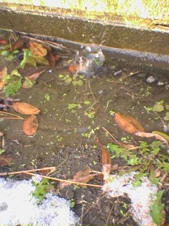 上の雪解け水が水面にぶつかって跳ねたところ、