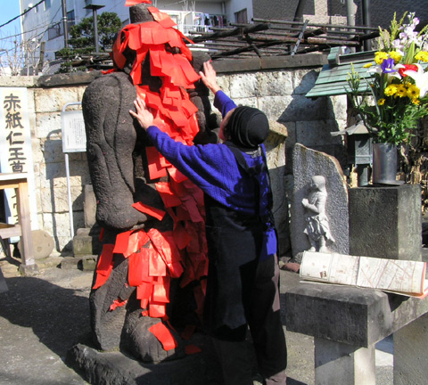 こんばんわ、写真とるのもこの頃億劫になってしまいました。先日、田端の文士村の下見に言って偶然見つけた「赤紙仁王」。自分の具合の悪いところを仁王様に赤い紙を貼り撫でるとと効き目があるそうです。