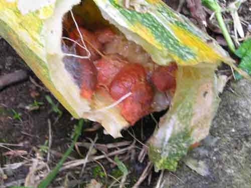 そして熟して落ちていた、瓜の中味の写真です。
