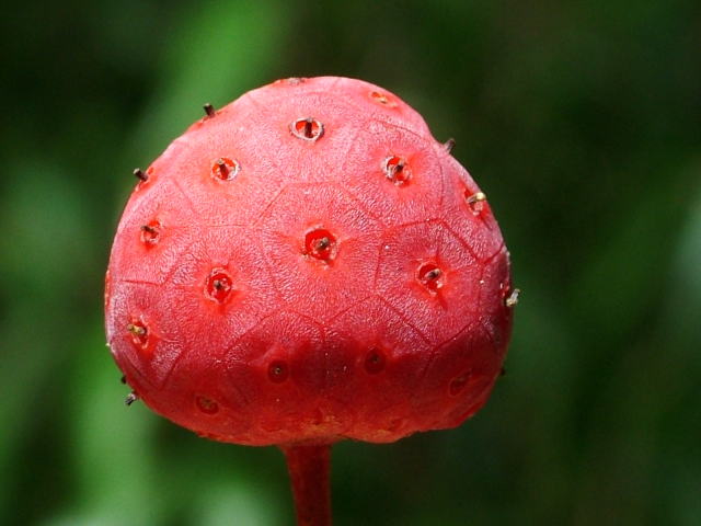 実のマクロを撮ったら、サッカーボールのように六角形と五角形の模様があることが気がつきました。