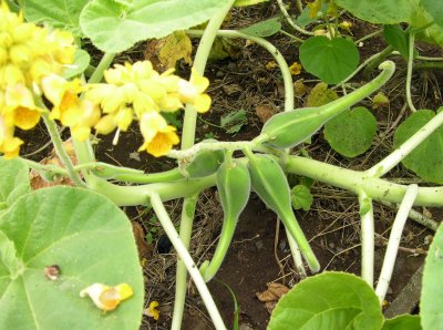 棉の花が実になっています。花も同時に咲いていました。