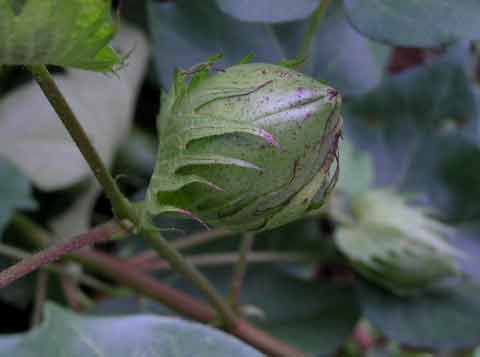棉の実が裂けると「桃吹く」本当に桃にそっくりです。