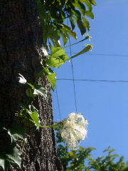 うちの前のこぶしの木に巻きついているのは毎日、一個ずつ咲いています。