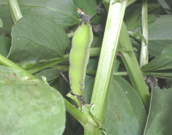 ソラマメ。ちょっと遅い。こうやって上を向いてなるから天豆だということです。
