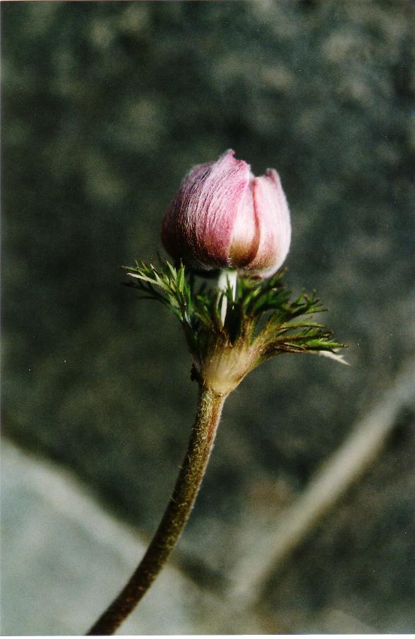 アネモネの蕾。赤。これにも風情があります。