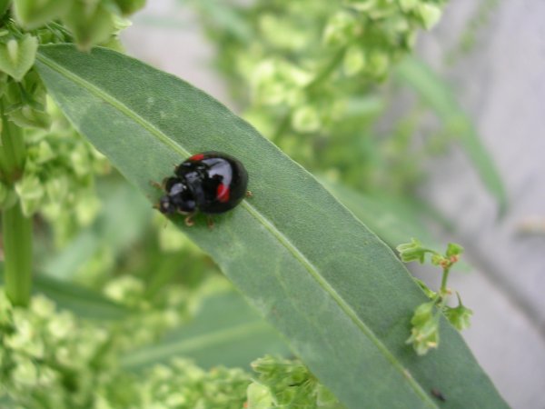 ギシギシの種の上にいた、テントウムシ。逃げたところで、小休止。テントウムシは種類によって、随分食草が違うようですね。