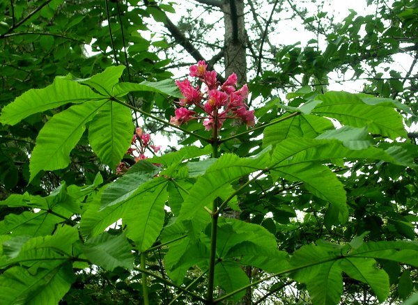 今日はアブラギリを撮りに行って、間に合わなかった。来年まで待つしかないナ。かわりにベニバナトチノキです。