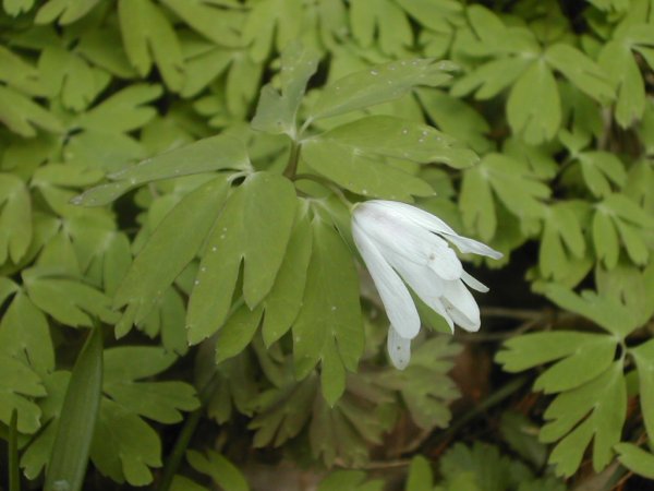 「あずまいちげ」4月に母を連れて新潟の温泉巡りをした折、長岡の桜の公園に行ったおり、道をそれたらこの花が咲いていました。何の花か解らず写真に撮りましたが図鑑で調べたら「東一華」うすいブルーで華奢な花でした。