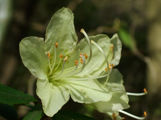 やっとヒカゲツツジに出会えました。 黄色の花が咲くツツジですが、人が近づけない切り立った岩場が好きなようです。