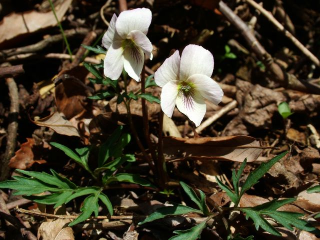 六甲山では数が少ないスミレですが、ハイキング道のそばに咲いていました。 細かい切れ込みの入った葉が特徴です。