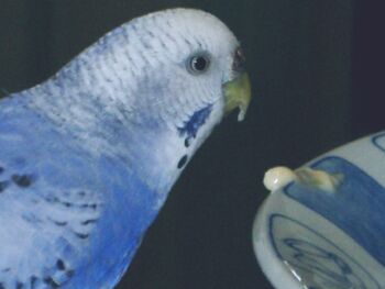 雄雌はわからないのですが、最初3羽籠にいれたそうです。すると1羽は亡くなり、(何故亡くなったのか?)そのうち2羽になりました。私が見ると、その2羽も1羽がもうひとつの1羽の羽やら頭やらをよくつついていました。私は、これは何をしているんだろう、と思いました。いじめているのか?それとも愛情表現か?やがて、1羽が止まり木から、下の水場まで、くちばしを使って降りてきて、水を呑み、又くちばしを使って止まり木に戻りました。いたいけな姿だなあ、と見ていましたが、翌日鳥は亡くなりました。すると、もう1羽もあとを追うように亡くなりました。ある朝起きてみたら、水場の近くで、倒れていました。2羽とも、そんな亡くなり方でした。