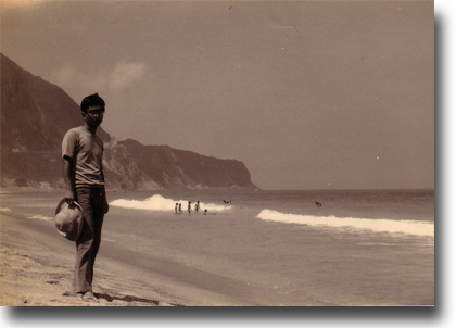 71年ごろの新島・羽伏浦。去年のうろこ新聞の写真を見ると同じ地形を撮っているのがわかる。