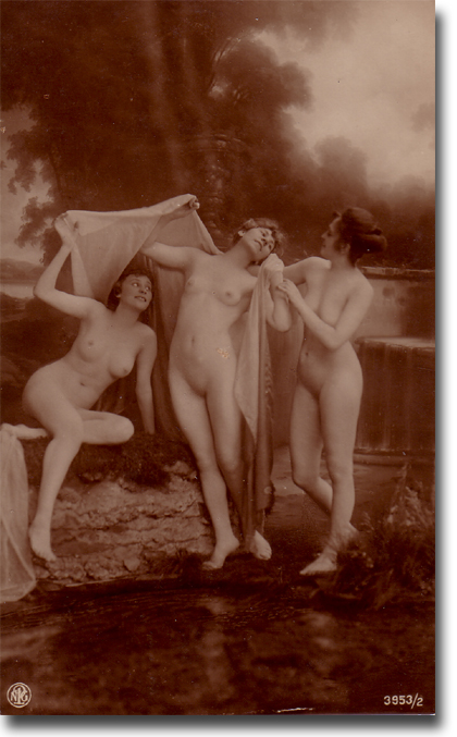 「毛」の問題ですが、白人系の人はそんな濃くないか、この時代の写真で写せたかどうかは、専門家に聞いてください。写っているような気もします。修正かも、そうとすれば、あるいはギリシャ彫刻の影響かも知れません。