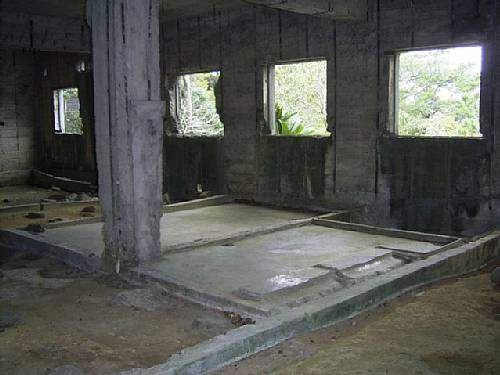 戦跡の弾薬庫跡の建物の中は野生のヤギのフンがいっぱい。