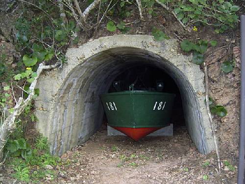 奥まった入り江に小さな船を隠す穴がいくつか残っているそうで、その一つの穴に模型の船が収めてあるのを見ました。